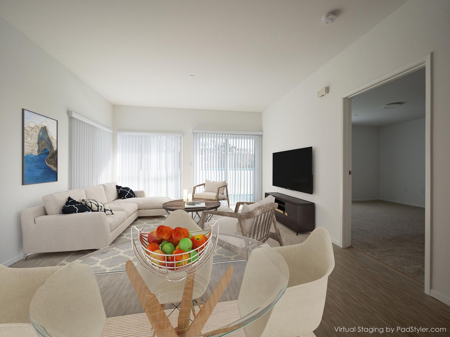 - Bright, modern interiors with fresh white walls